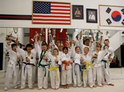 Our program for the kids is an adventure in learning and physical agility. They will learn about the history of the traditional Korean Karate and master the punches, kicks, blocks and forms that make Soo Bahk Do special. In addition to being instructed in Soo Bahk Do, they are taught the special food groups for healthy eating, your muscles and bones, importance of word power and a good educational balance.